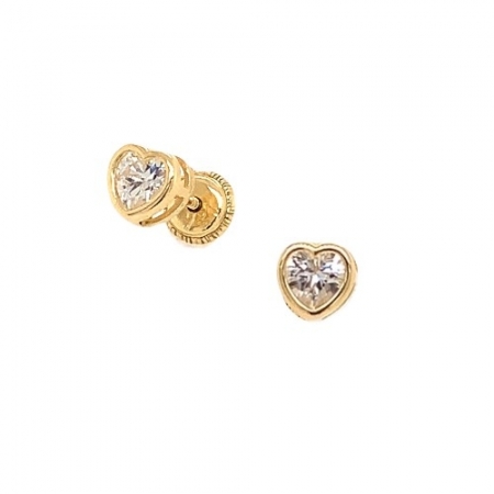 Cерьги-гвоздики Сердечки из желтого золота с фианитами