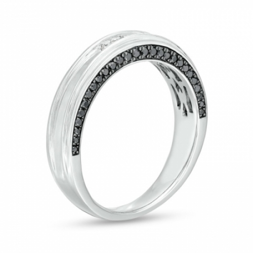 Мужское кольцо из белого золота 585 пробы с черными и белыми бриллиантами