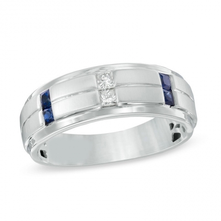 Средние характеристики: круглый белый бриллиант; сапфир голубой, размер: 2.3 мм