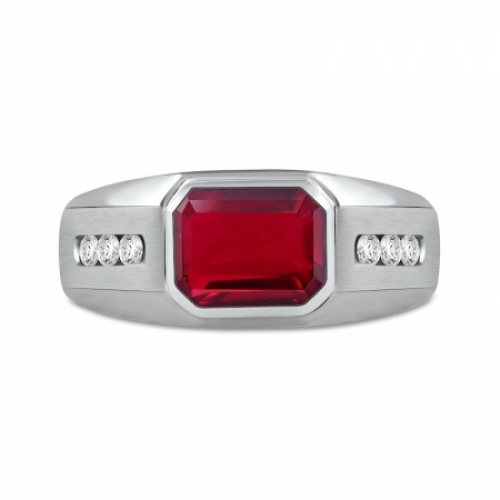 Мужское кольцо из серебра с гранатом и белым сапфиром