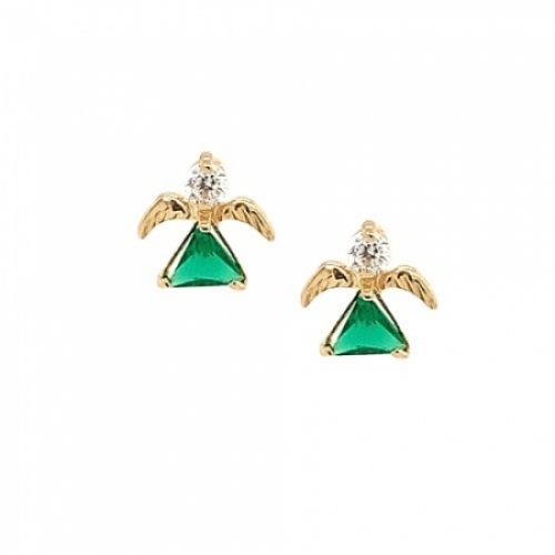 Серьги-гвоздики Ангелочки из желтого золота с фианитами