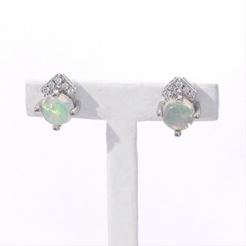 Серьги-гвоздики из белого золота 585 пробы с опалом и бриллиантами
