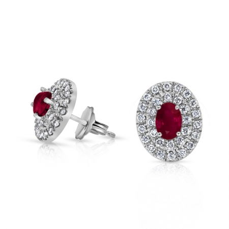 Серьги-гвоздики из белого золота 585 пробы с рубином и бриллиантами