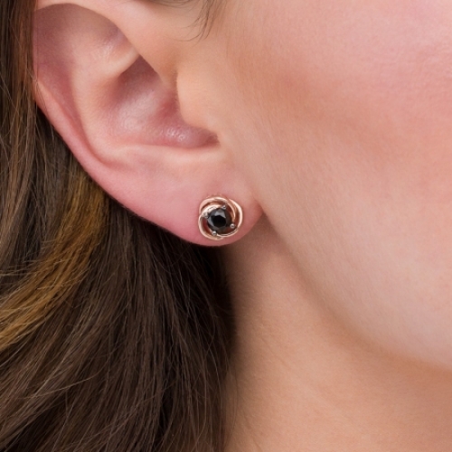 Серьги-гвоздики из красного золота 585 пробы с черным бриллиантом
