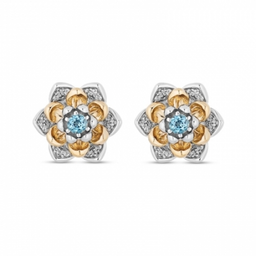 Серьги-гвоздики из серебра 925 пробы с топазом и бриллиантами