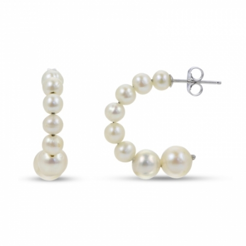 Серьги-гвоздики из серебра с белым жемчугом
