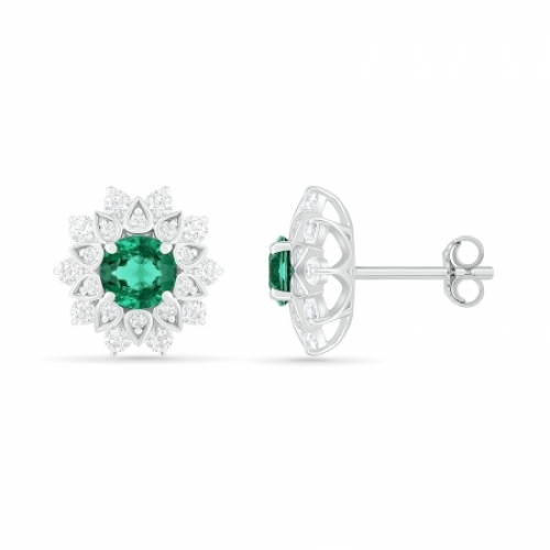 Серьги-гвоздики из серебра с изумрудом и белым сапфиром