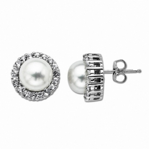 Серьги-гвоздики из серебра с жемчугом и белым топазом
