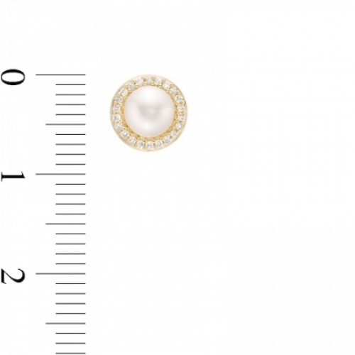 Средние характеристики: жемчуг белый, размер: 6 мм, огранка Круг; круглый бриллиант
