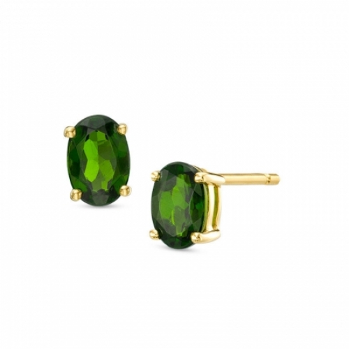 Серьги-гвоздики из желтого золота 585 пробы с хромдиопсидом