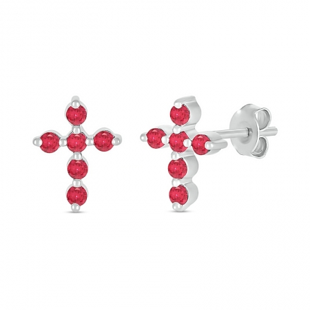 Серьги-гвоздики в виде Крестиков из серебра с рубином