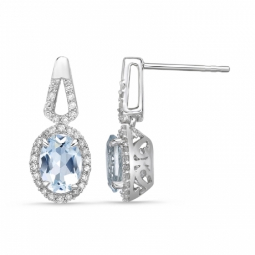 Серьги из белого золота 585 пробы с аквамарином и бриллиантом