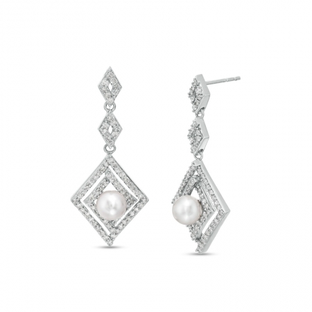Средние характеристики: жемчуг белый, размер: 5.5 мм, огранка Круг; круглый бриллиант