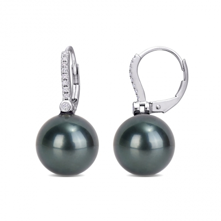 Средние характеристики: жемчуг черный, размер: 11.0-12 мм, огранка Круг; круглый бриллиант