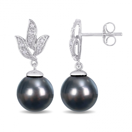 Серьги из белого золота 585 пробы с черным жемчугом и бриллиантами