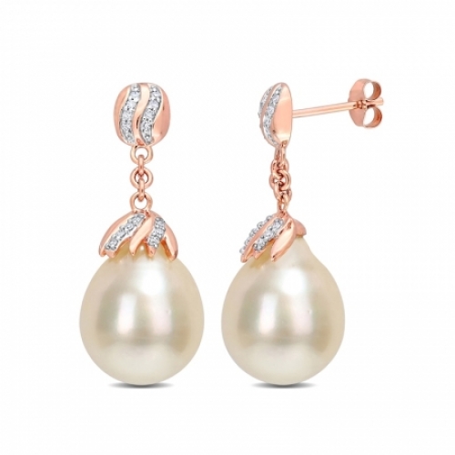 Серьги из красного золота 585 пробы с белым жемчугом и бриллиантом