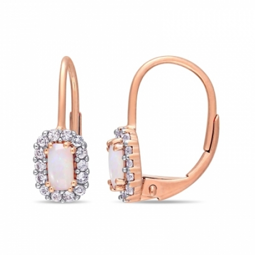 Серьги из красного золота 585 пробы с опалом и белым сапфиром