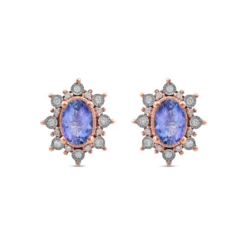 Серьги из красного золота 585 пробы с танзанитом и бриллиантами