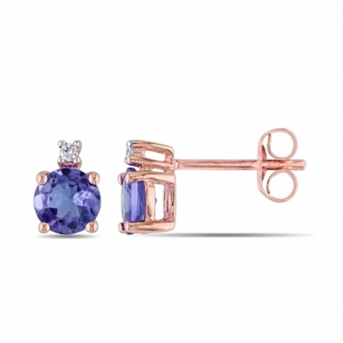 Серьги из красного золота 585 пробы с танзанитом и бриллиантами