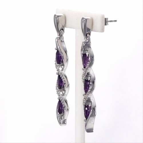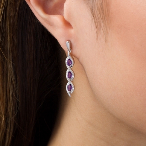 Средние характеристики: аметист фиолетовый, размер: 5x3 мм, огранка Маркиз; круглый бриллиант