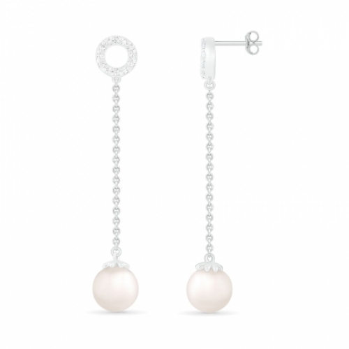 Серьги из серебра с жемчугом и белым сапфиром