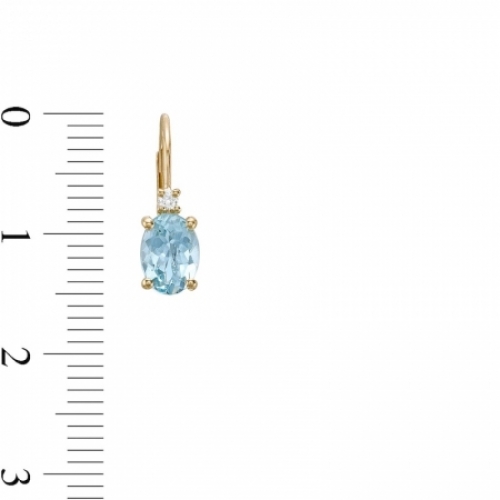 Серьги из желтого золота 585 пробы с аквамарином и бриллиантом