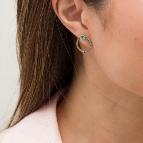 Средние характеристики: изумруд зеленый, размер: 3x5 мм, огранка Груша; бриллиант шампань, огранка Круг