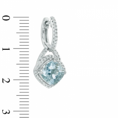 Средние характеристики: аквамарин голубой, размер: 6 мм, огранка Кушон (подушка); круглый бриллиант