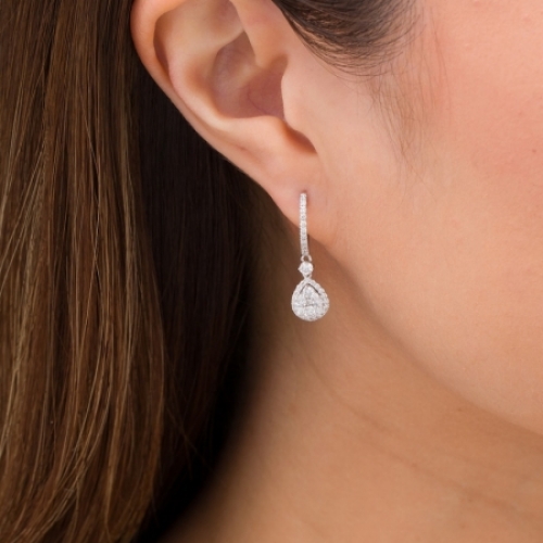 Серьги висячие из белого золота 585 пробы с бриллиантом