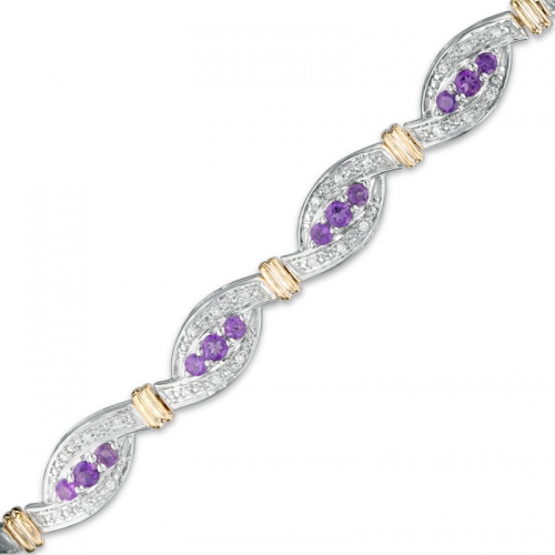 Средние характеристики: аметист фиолетовый диаметром 2,3 мм, огранка Круг; аметист, размер: 2 мм, огранка Круг; круглый белый бриллиант