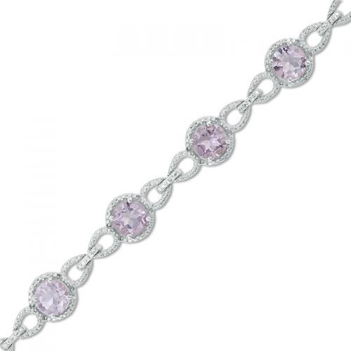 Средние характеристики: аметист розовый, размер: 7 мм, огранка Круг; круглый бриллиант