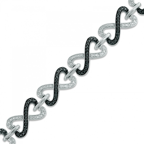 Браслет из серебра с черными и белыми бриллиантами