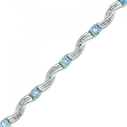 Средние характеристики: топаз голубой диаметром 4 мм, огранка Круг; бриллиант, огранка Багет
