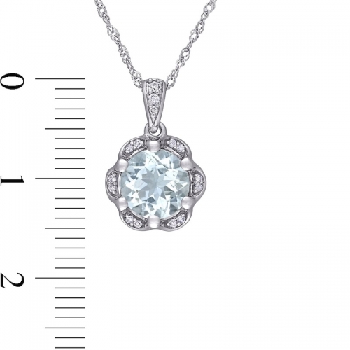 Средние характеристики: аквамарин голубой, размер: 7 мм, огранка Круг; круглый бриллиант