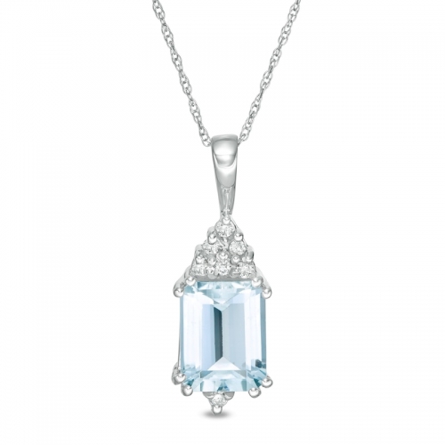 Средние характеристики: аквамарин голубой, размер: 9x7 мм, огранка Октагон; круглый бриллиант