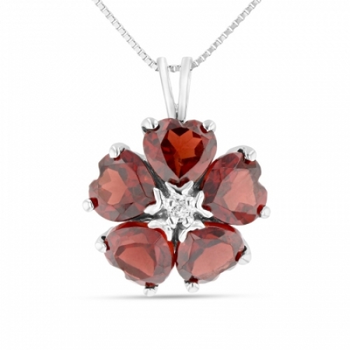 Средние характеристики: гранат красный, размер: 6 мм, огранка Сердце; круглый бриллиант