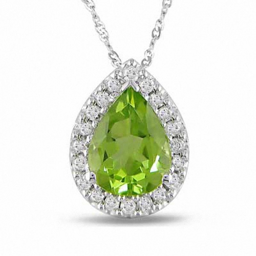 Средние характеристики: перидот зеленый, размер: 9x7 мм, огранка Груша; круглый бриллиант