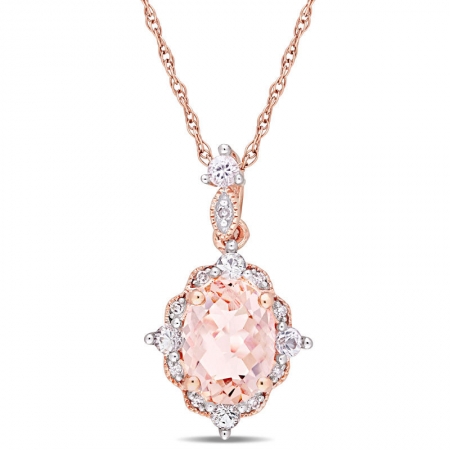 Средние характеристики: морганит розовый, размер: 8x6 мм, огранка Овал; сапфир белый, размер: 2 мм, огранка Круг; круглый белый бриллиант