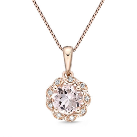 Колье из красного золота 585 пробы с морганитом и бриллиантами