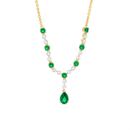 Колье из серебра 925 пробы с изумрудом и белым сапфиром
