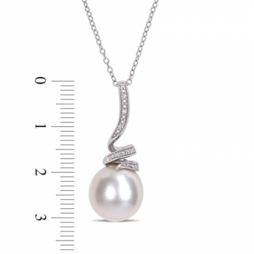 Средние характеристики: жемчуг белый, размер: 11x12 мм, огранка Круг; круглый бриллиант