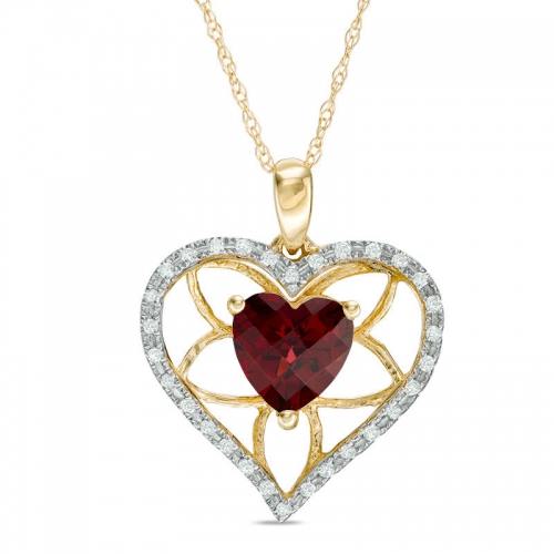Средние характеристики: гранат красный, размер: 7 мм, огранка Сердце; круглый бриллиант