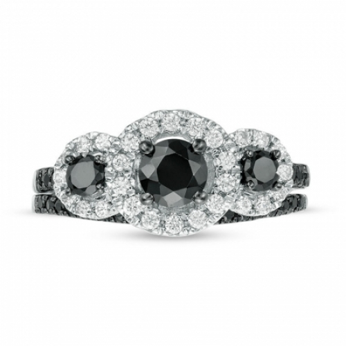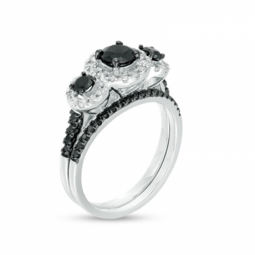 Комплект колец из белого золота 585 пробы с черными и белыми бриллиантами