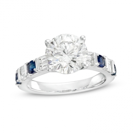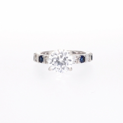Средние характеристики: бриллиант лабораторный белый, огранка Круг; бриллиант лабораторный, размер: 2.8 мм, огранка Багет; голубой круглый сапфир размером 1,2 х 2,8 мм