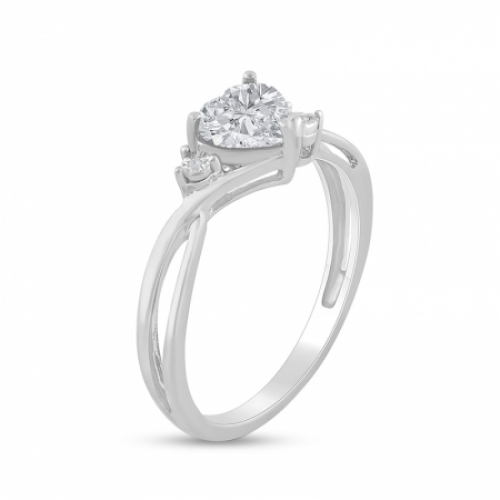 Помолвочное кольцо из белого золота с белым сапфиром 6*6 мм огранки Сердце и бриллиантами