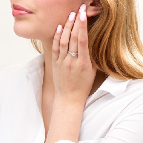 Отзывы о Помолвочное кольцо из белого золота с круглым белым сапфиром 5 мм и бриллиантами