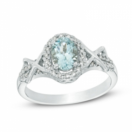 Средние характеристики: аквамарин голубой, размер: 7x5 мм, огранка Овал; круглый бриллиант