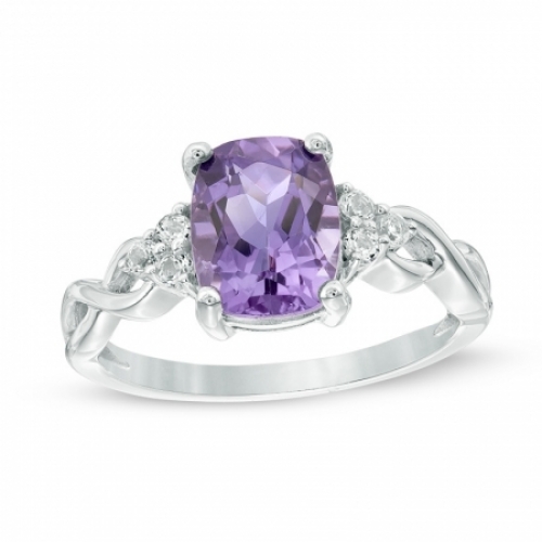 Средние характеристики: аметист фиолетовый, размер: 9x7 мм, огранка Кушон (подушка); топаз белый, размер: 1.8 мм, огранка Круг