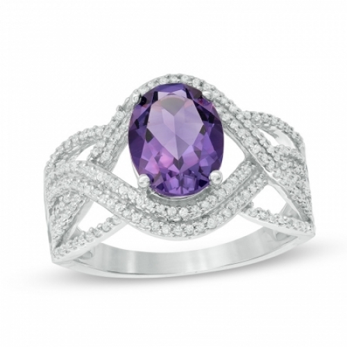 Средние характеристики: аметист фиолетовый, размер: 9x7 мм, огранка Овал; круглый бриллиант
