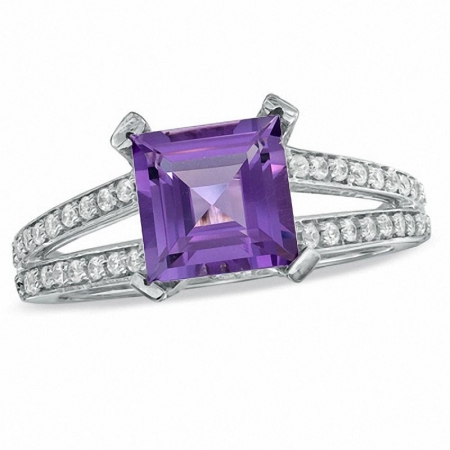 Средние характеристики: аметист фиолетовый, размер: 7.2 мм, огранка Квадрат; круглый бриллиант